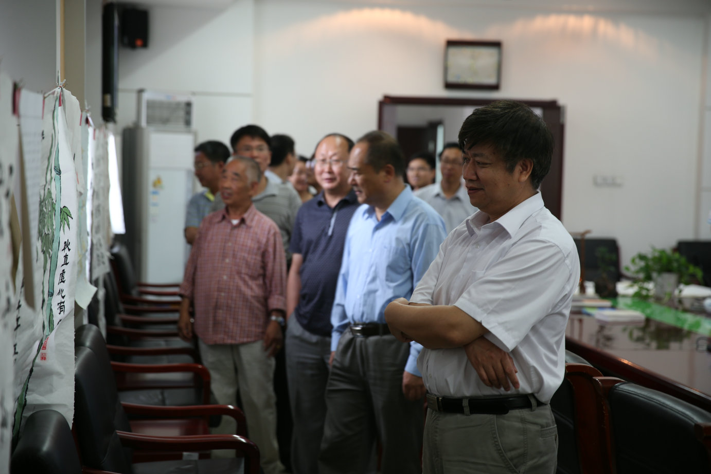 去年院纪委开展了警言佳句创作征集评选活动,并将部分作品进行了集中展示,廉政文化墙初具雏形。按照院党委的部署要求,我们将努力把廉政文化墙打造成能积极反映“律己、修德、戒贪、廉正”等思想主题的廉政文化长廊,院纪委将从本次交流会中推选出优秀书画作品丰富到廉政文化长廊中去。