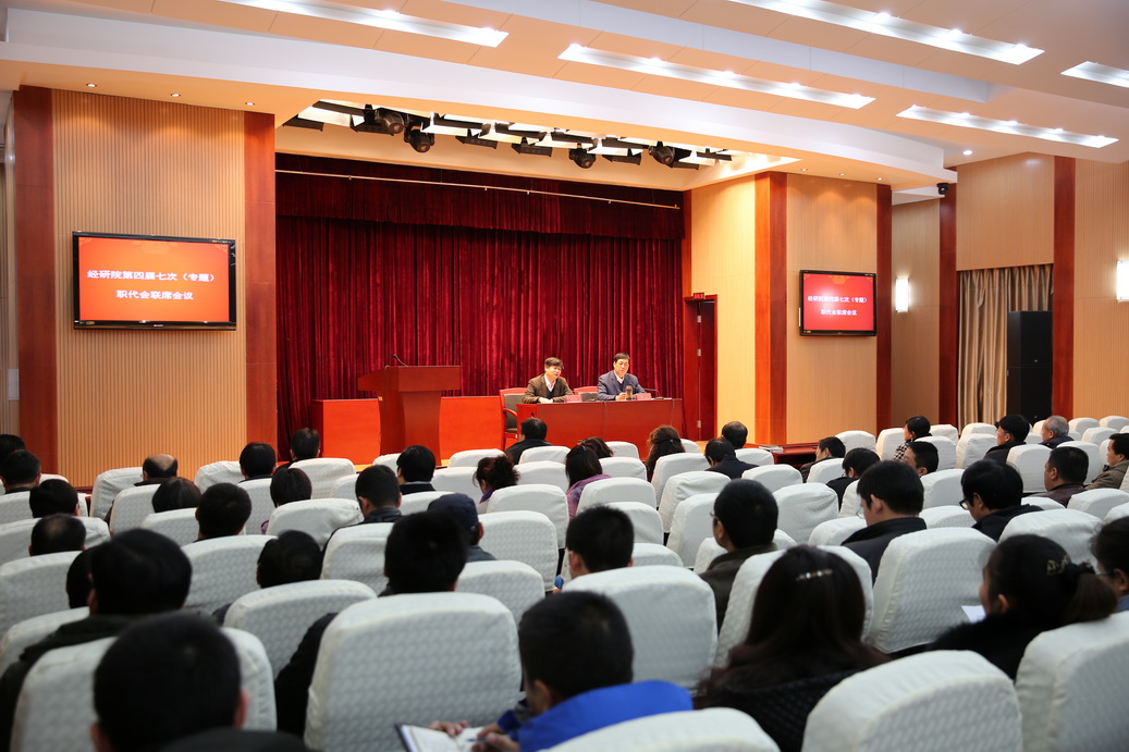 1月9日至10日,院工会组织召开第四届七次职工(会员)代表暨处以上干部联席会?;嵘希?1名处以上领导干部向全体职工(会员)代表进行了年度述职,就一年来本单位的重点工作落实情况、职责履行情况、内部职工民主管理情况、职工队伍建设情况和党支部建设情况向大会做了汇报,并结合自身工作从德、能、勤、绩、廉五个方面向大会做了总结。全体职工代表依照经研院绩效评估细则对全体处以上干部进行了民主测评。