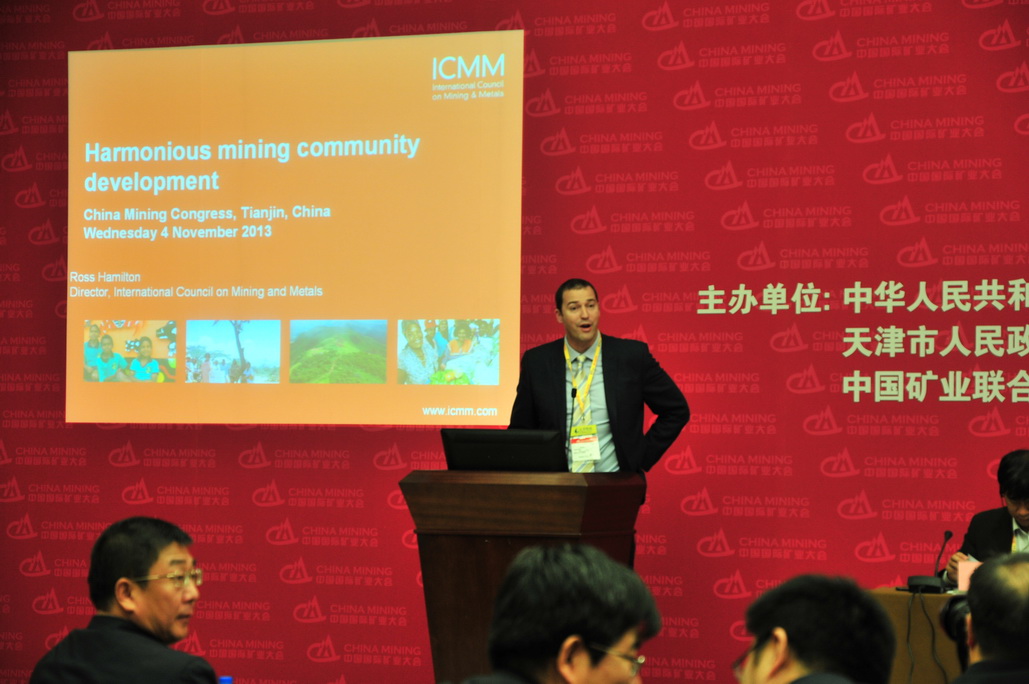 国际矿业与金属理事会(ICMM)罗斯.汉密尔顿先生介绍了“社区发展工具箱”,讨论了协会在社区合作、原著居民、社区发展和?;と巳ǚ矫娴睦砟詈凸ぷ?。