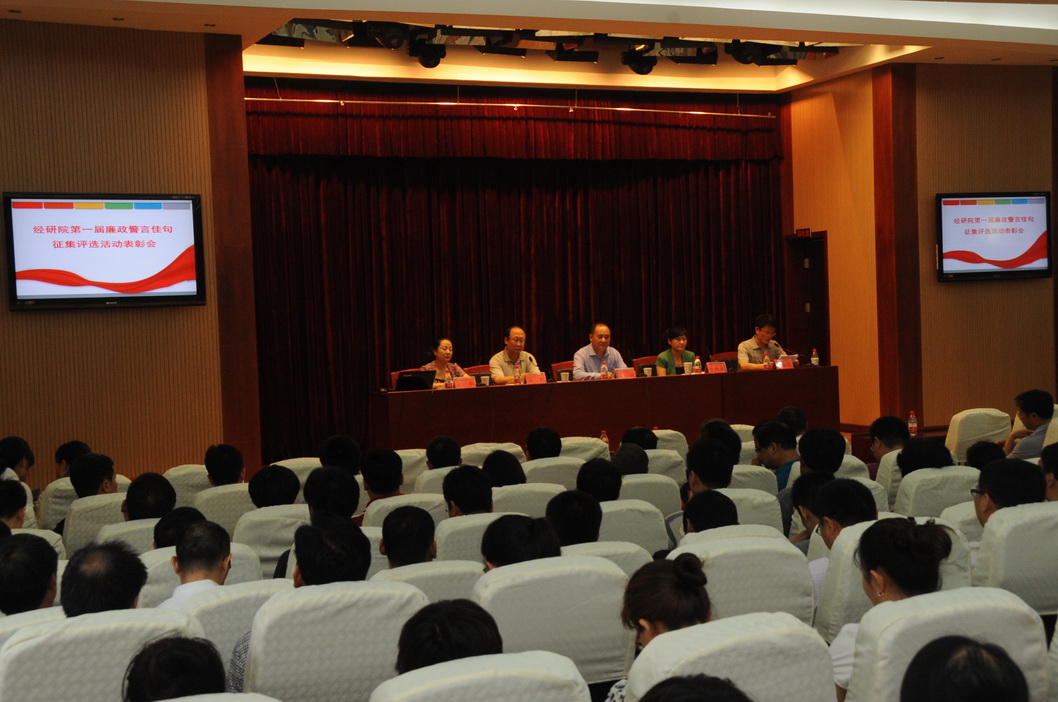 6月21日,我院举办“第一届廉政警言佳句征集评选总结表彰会暨党风党纪教育月活动”,对“十佳原创奖”、“优秀个人奖”、“ 优秀组织奖”、“贡献奖”称号获得者予以表彰。中央纪委驻国土资源部纪检组副局级专员仲晓娜同志应邀出席会议,对我院开展的廉政警言佳句征集评选和表彰活动给予了充分肯定,并为获奖人员颁奖。院纪委书记崔波同志出席会议,为获奖人员颁奖并作了讲话。
