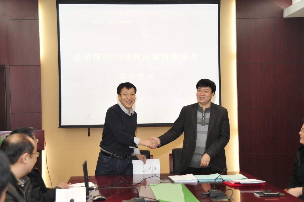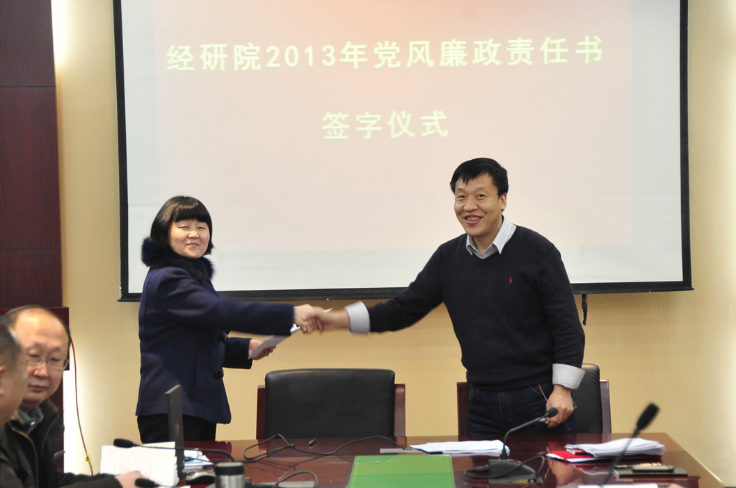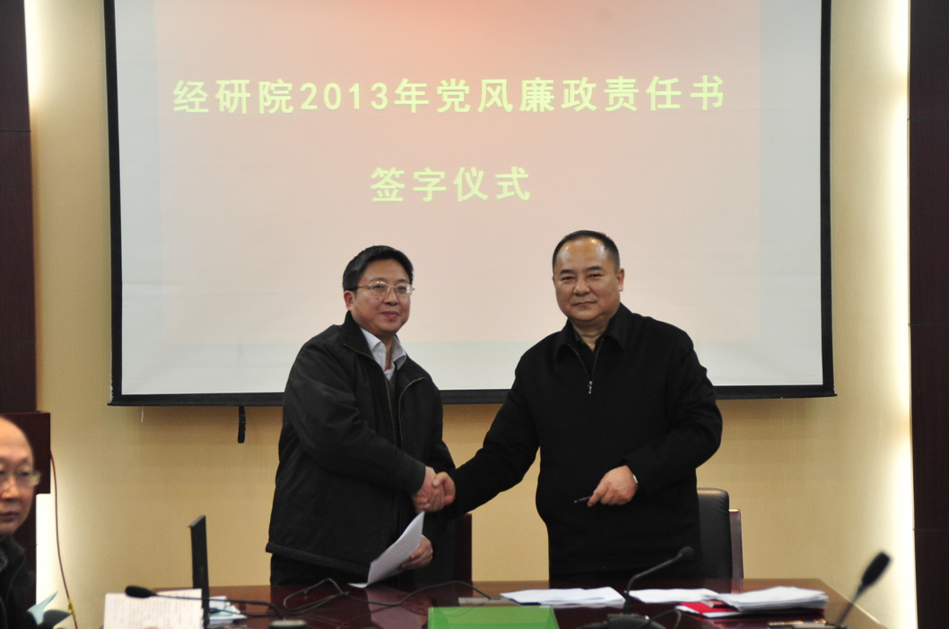 为深入贯彻执行党风廉政建设责任制,进一步强化领导干部一岗双责意识,2月25日,经研院举办党风廉政建设责任书签字仪式。院长分别与各分管院领导,分管院领导分别与分管的所、处室第一负责人签订了党风廉政建设责任书。责任书规定了处以上干部的廉政责任,并对领导干部改进工作作风、密切联系群众相关规定,制度建设和信息公开,责任追究机制等做出了明确要求。