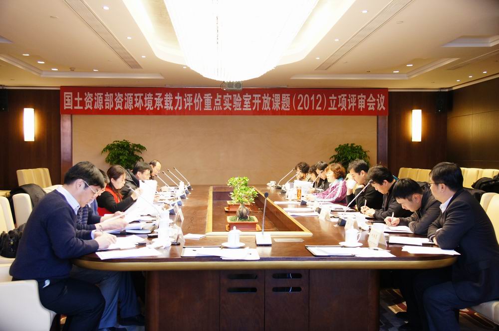 2012年12月8日,国土资源部资源环境承载力评价重点实验室在中国地质大学(北京)组织召开了“国土资源部资源环境承载力评价重点实验室开放课题(2012)立项评审会”,审查遴选并最终确定了拟资助的开放课题名单?;嵋橛芍泄刂蚀笱?地大北京)雷涯邻副校长主持并担任主审委员,中国国土资源经济研究院(经研院)付英副院长发表了讲话,袁国华研究员对实验室设置开放课题的目的、2012年度开放课题申报指南确定的资助课题(方向)、申请人资格、申请书编写规范要求、收到的申请书情况、评审要求等做了详细说明,部科技与国际合作司科技计划处何凯涛副处长对开放课题评审提出了具体的意见和建议。