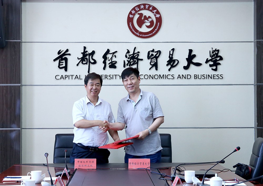 5月30日下午,中国自然资源经济研究院与首都经济贸易大学合作框架协议签约仪式在北京举行。经济研究院院长张新安、首经贸校长付志峰出席仪式并代表双方签订合作框架协议。签约仪式由首经贸会计学院院长顾奋玲主持。