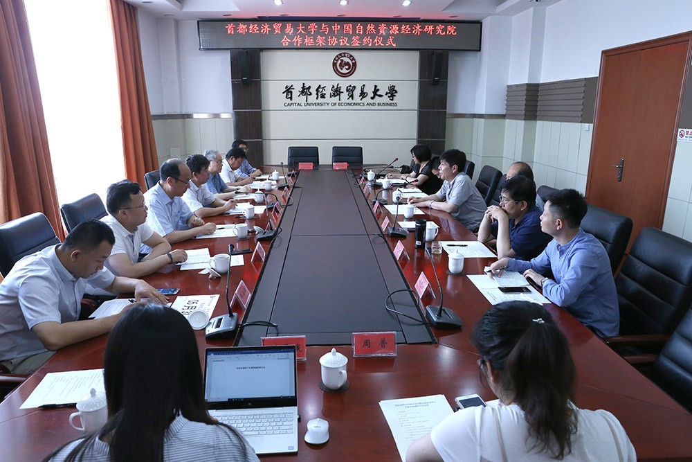 张新安院长感谢首经贸在以往给予经济研究院的大力支持。他指出,双方各有特色和专长且有着良好的合作基础,他希望通过此次签订合作框架协议能探索产学研合作的新模式,搭建理论研究与实践创新的新平台。张新安院长还分析了构建和发展中国特色自然资源经济学的必要性和可行性,他指出,习近平生态文明思想的落地,自然资源“两统一”综合管理,离不开经济学的有力支撑;改革开放40年自然资源管理改革发展的经验表明,必须用中国的经济理论指导中国的自然资源管理实践。张新安院长建议,结合当前自然资源管理的重大战略任务,希望在以下几个方面加强研究与合作:一是科学评估自然资源在经济社会发展的地位和作用;二是研究编制自然资源资产负债表;三是研究探索生态产品价值实现机制;四是研究建立自然资源管理绩效评价指标体系;五是研究探索自然资源资产的所有者代理机制。